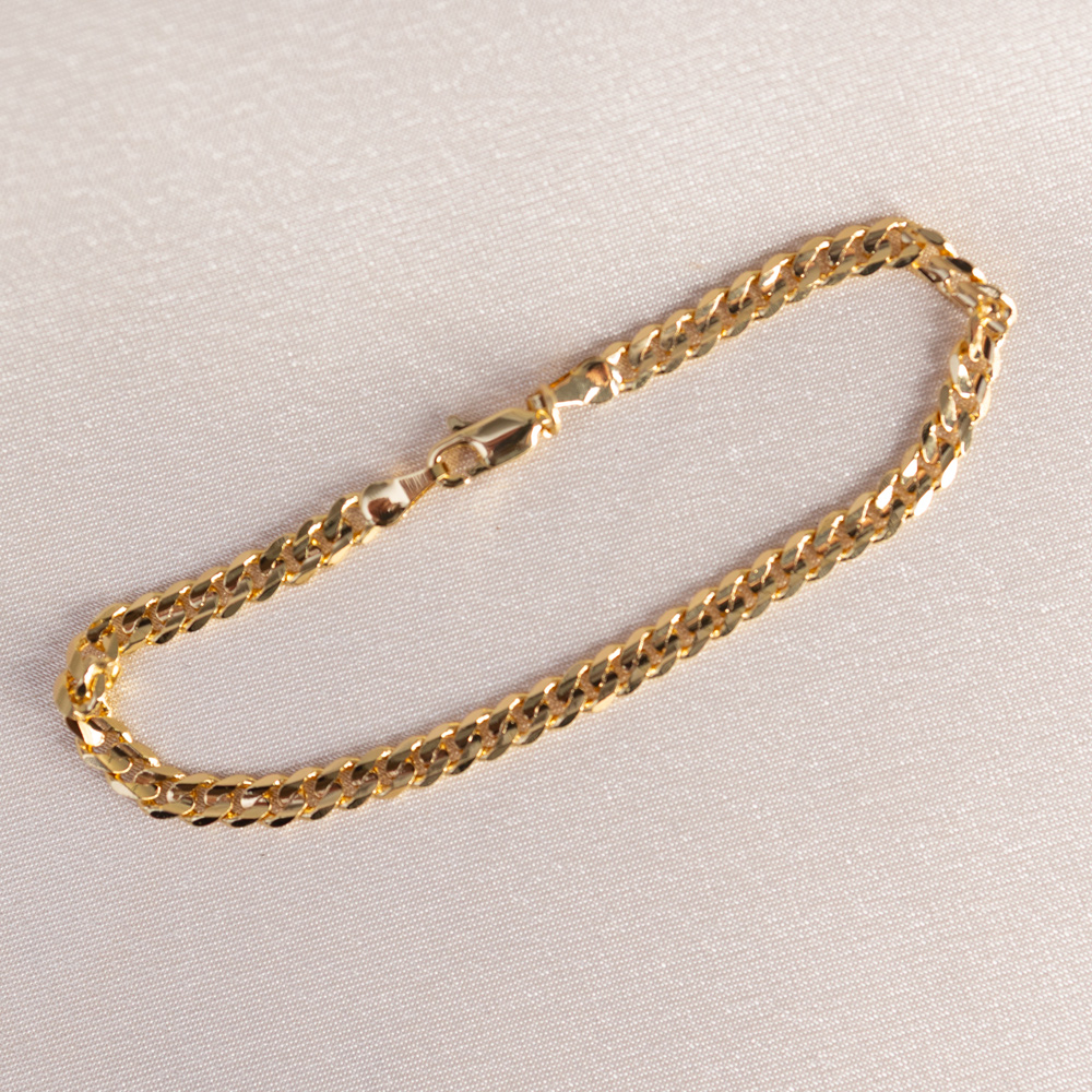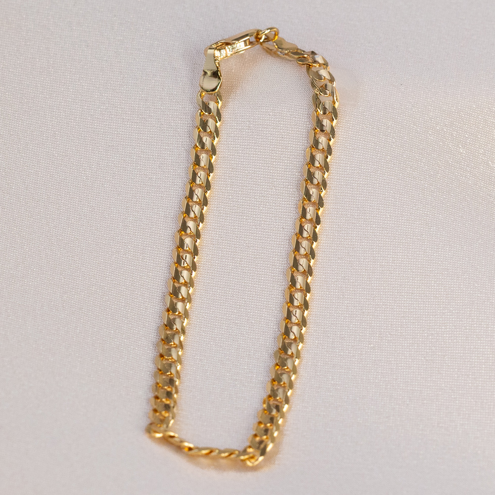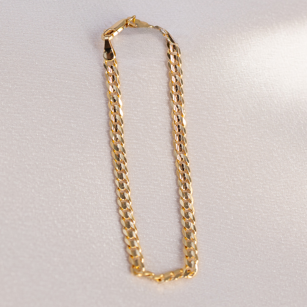 The definitive bold essential. This 18k Gold Filled Cuban Link bracelet, also known as a Miami Cuban, is a staple of modern luxury. Featuring thick, rounded links that are closely interlocked to lie flat against the skin, this piece offers a dense, high-polish finish and a substantial feel that exudes confidence and urban flair.