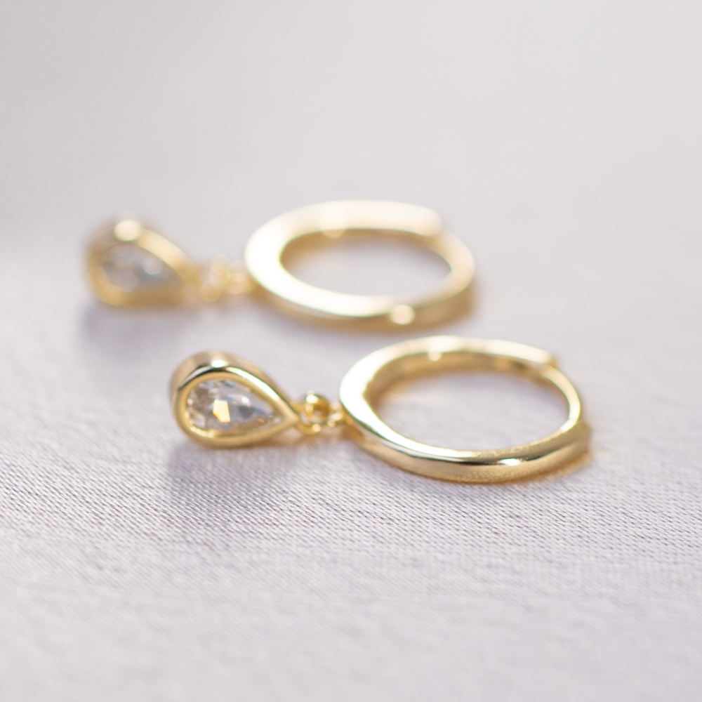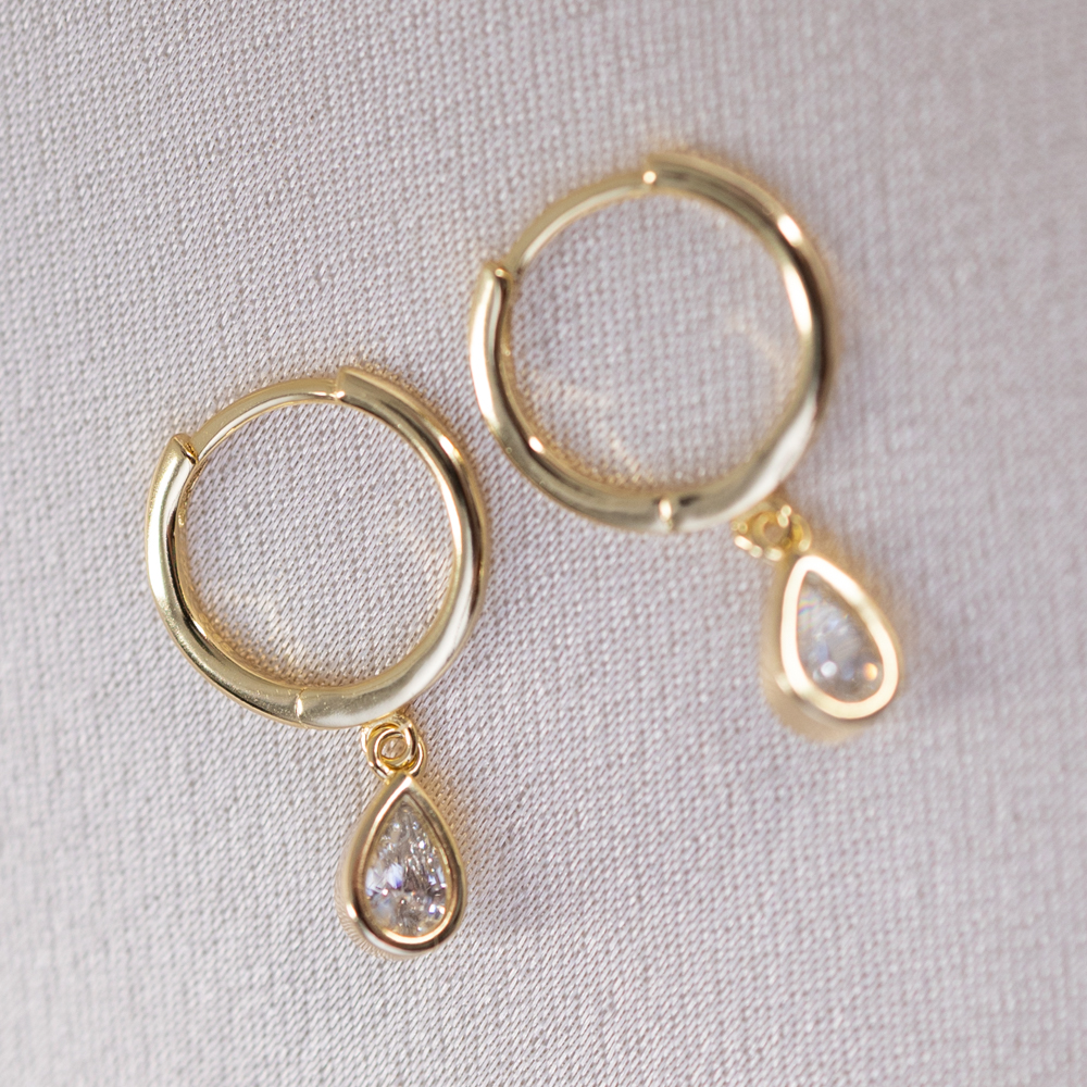 - Design: 19mm Huggie with Teardrop charm