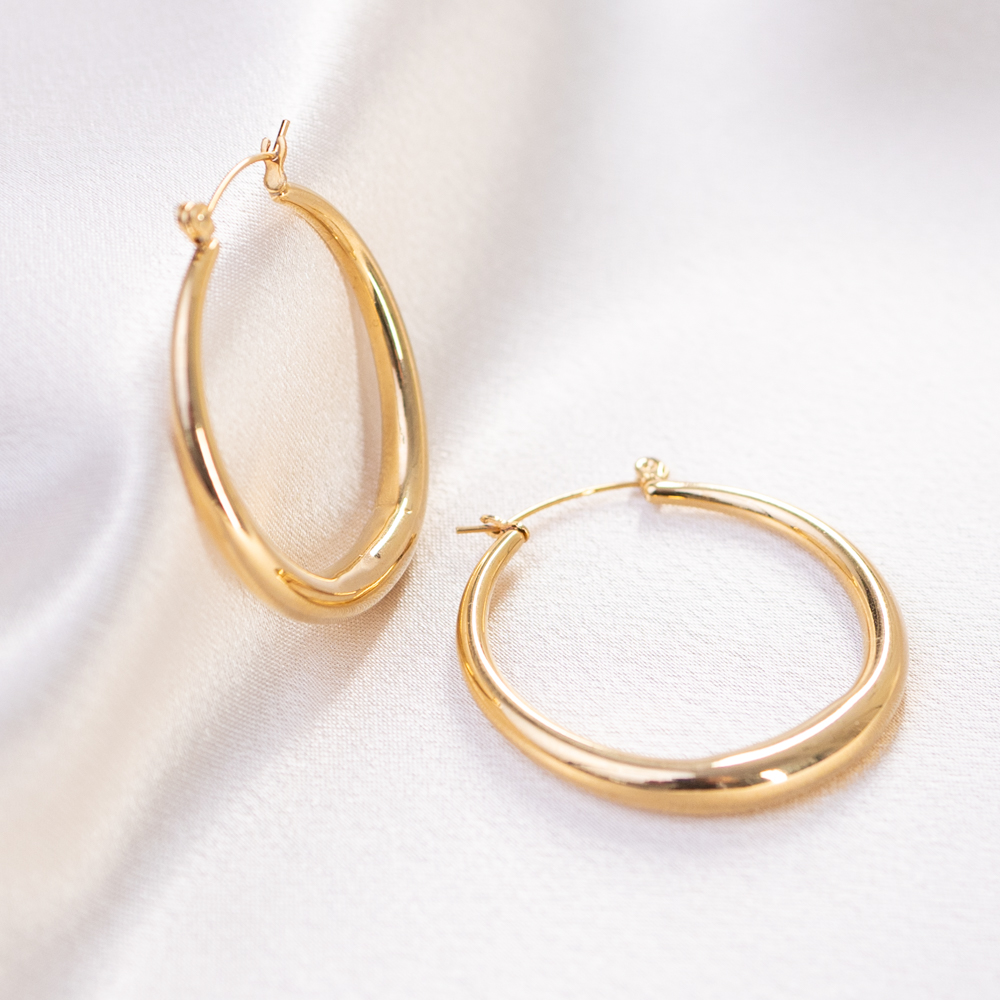 These hoops are designed for the woman who loves a bold look without the weight of extra detail. Despite their generous 37mm diameter, the minimalist profile ensures they remain effortless and airy, making them a perfect transition piece from day to night. They offer a polished, “quiet luxury” aesthetic that brings an immediate sense of confidence to any outfit.