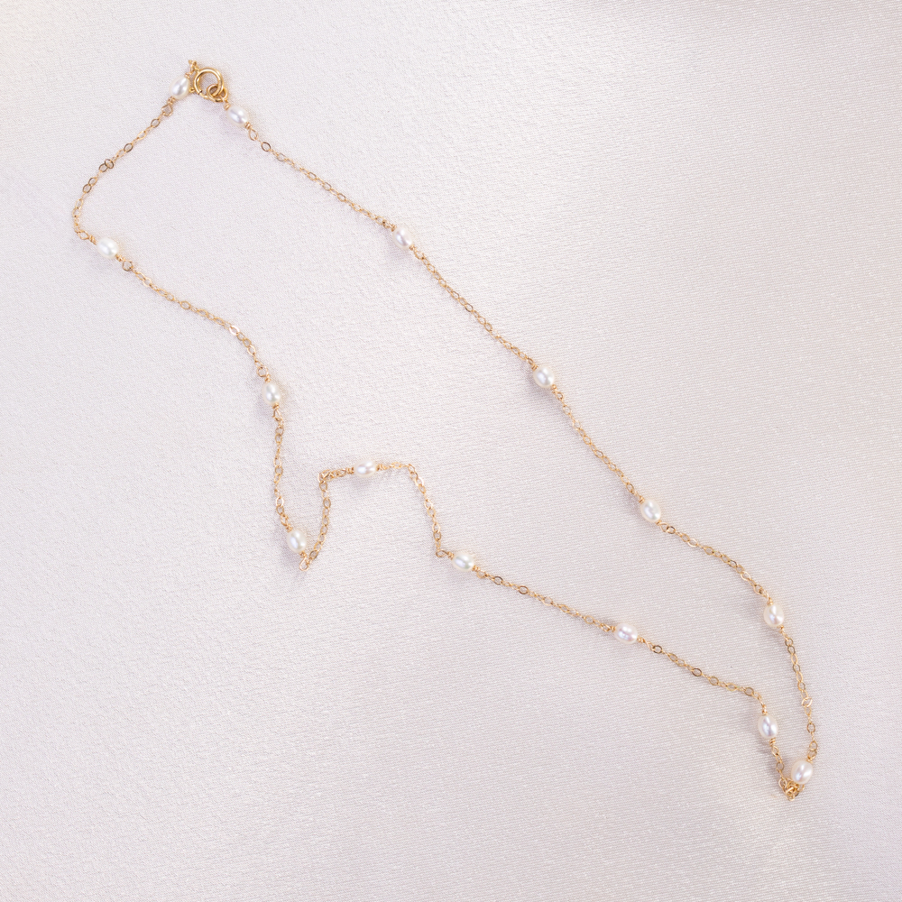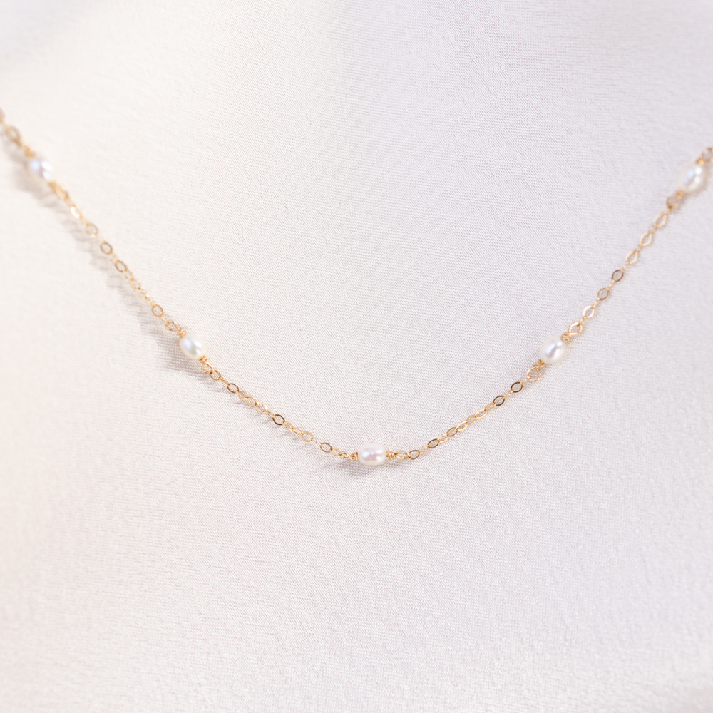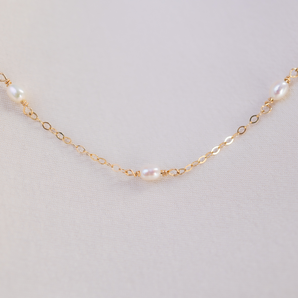 Designed to be your new signature accessory, this necklace transitions seamlessly from a “beautiful everyday” staple to a sophisticated statement for evening wear. The delicate 14k gold filled chain provides a high-shine, durable foundation that highlights the creamy luster of the pearls. Whether layered with minimalist gold chains or worn solo against a silk slip dress, its waterproof and tarnish-free construction ensures it remains a radiant part of your collection for years to come.