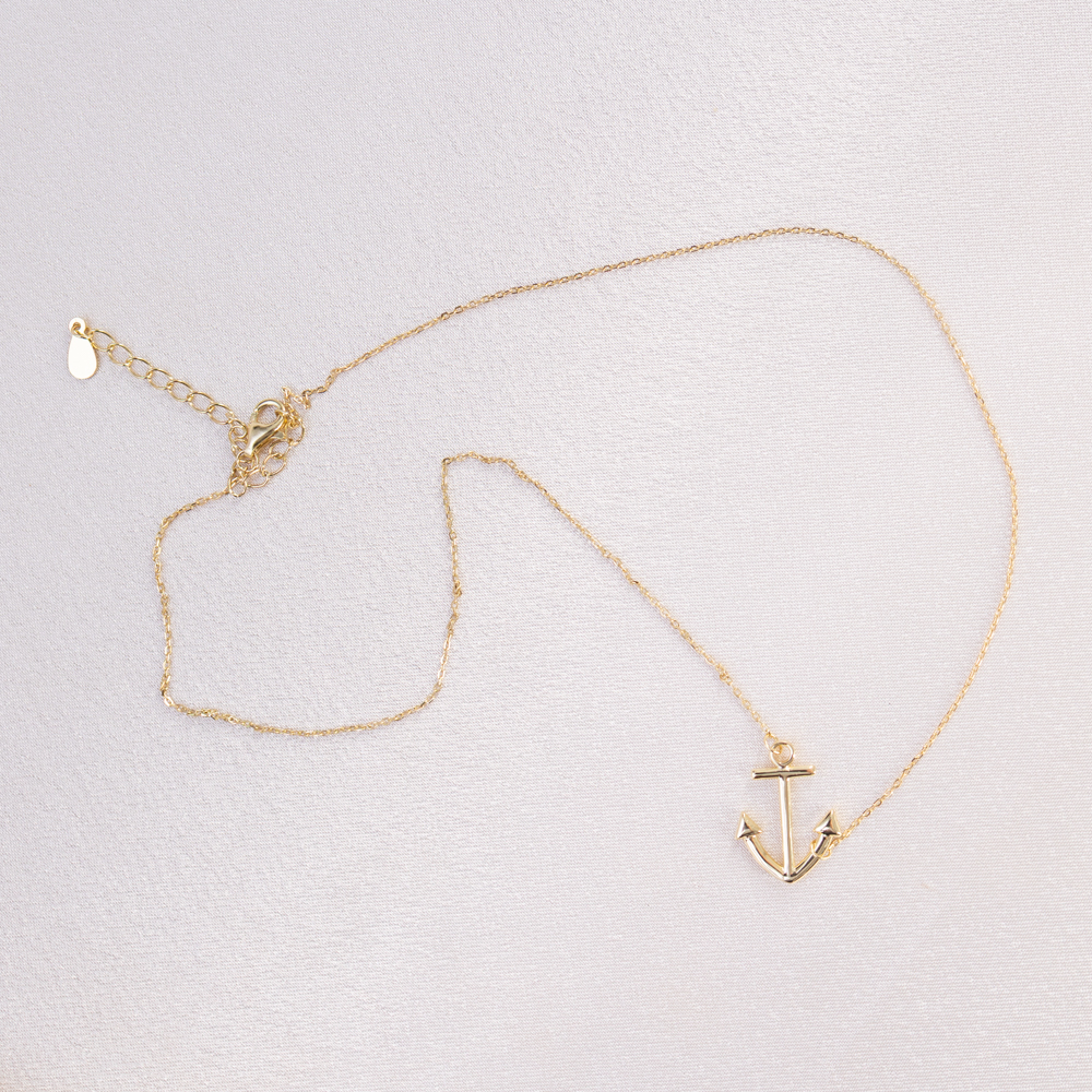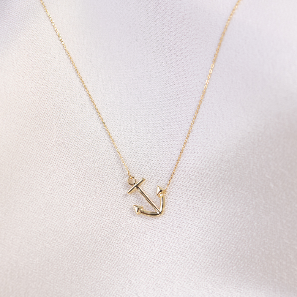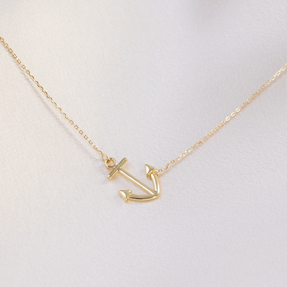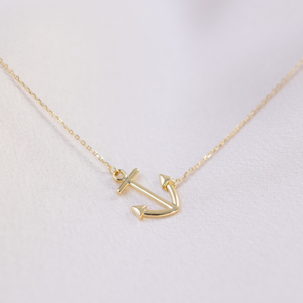 A steady symbol of hope, stability, and adventure. This dainty necklace is crafted from 925 Sterling Silver and finished in a luminous 14k Gold, featuring a finely detailed anchor charm. Unlike sliding pendants, this anchor is fixed in place at the center of the chain, ensuring it stays perfectly positioned to catch the light and maintain a symmetrical look.
