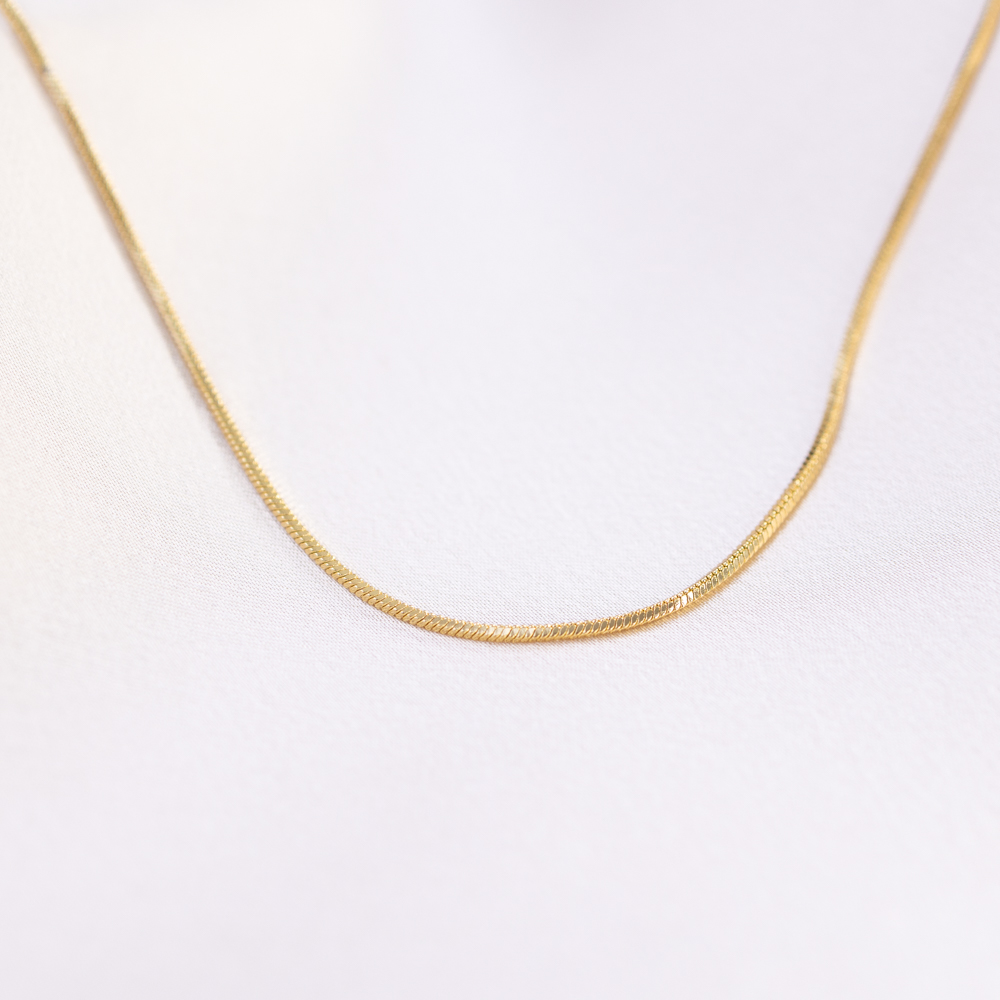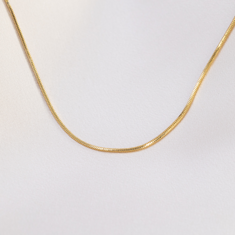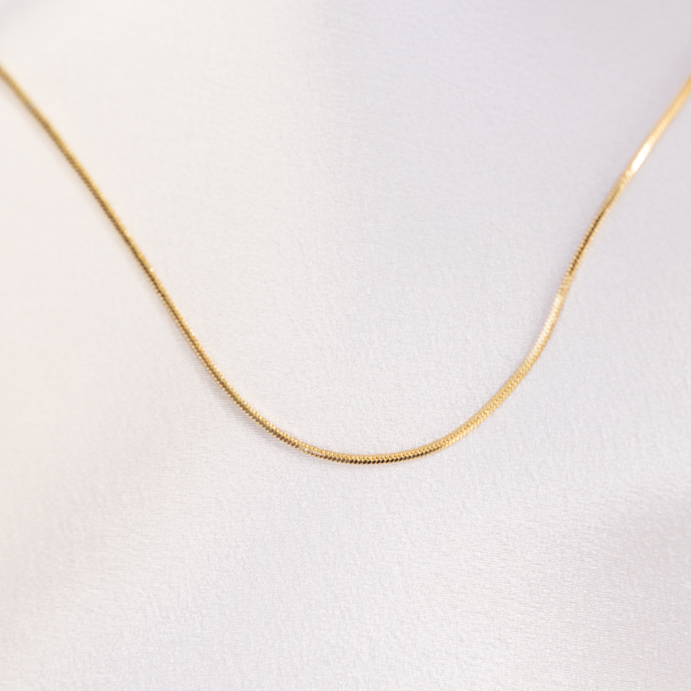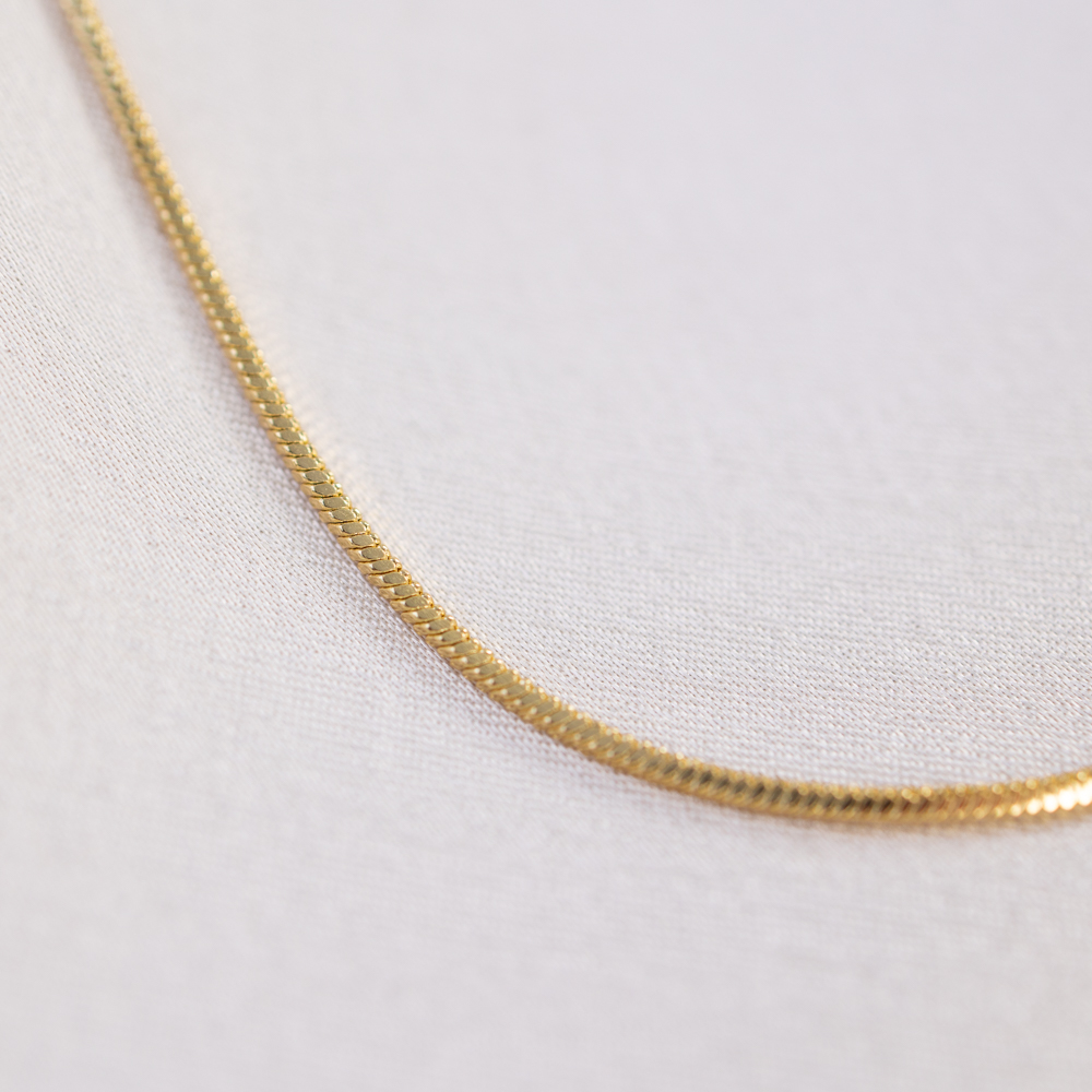 Sleek, fluid, and strikingly modern. This 26″ round snake chain is defined by its liquid-like movement and high-shine surface. With a continuous, seamless texture that catches the light from every angle, it offers a sophisticated silhouette that feels both vintage-inspired and completely contemporary.