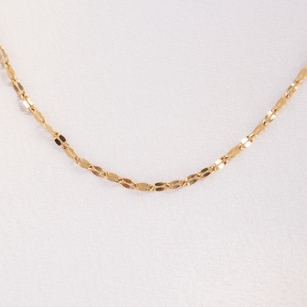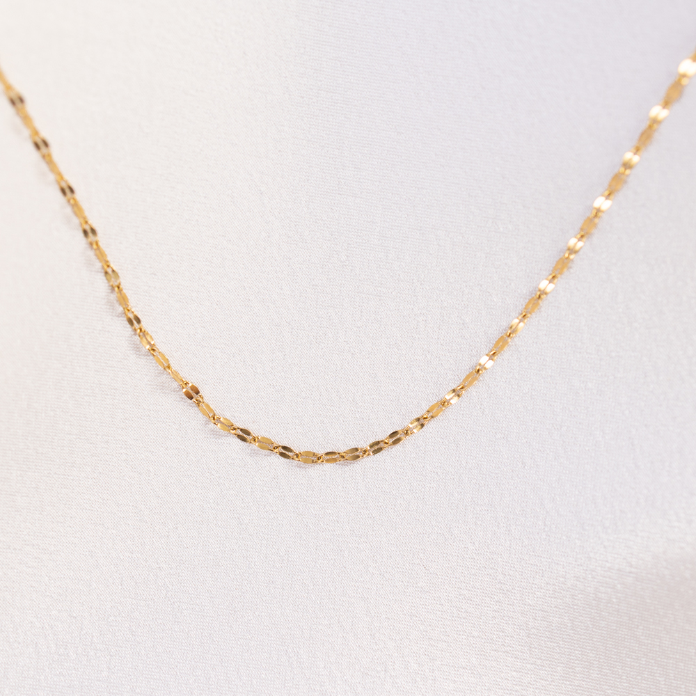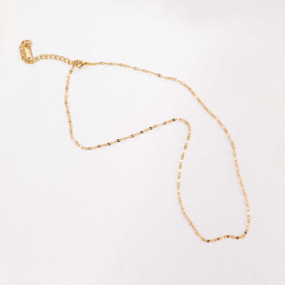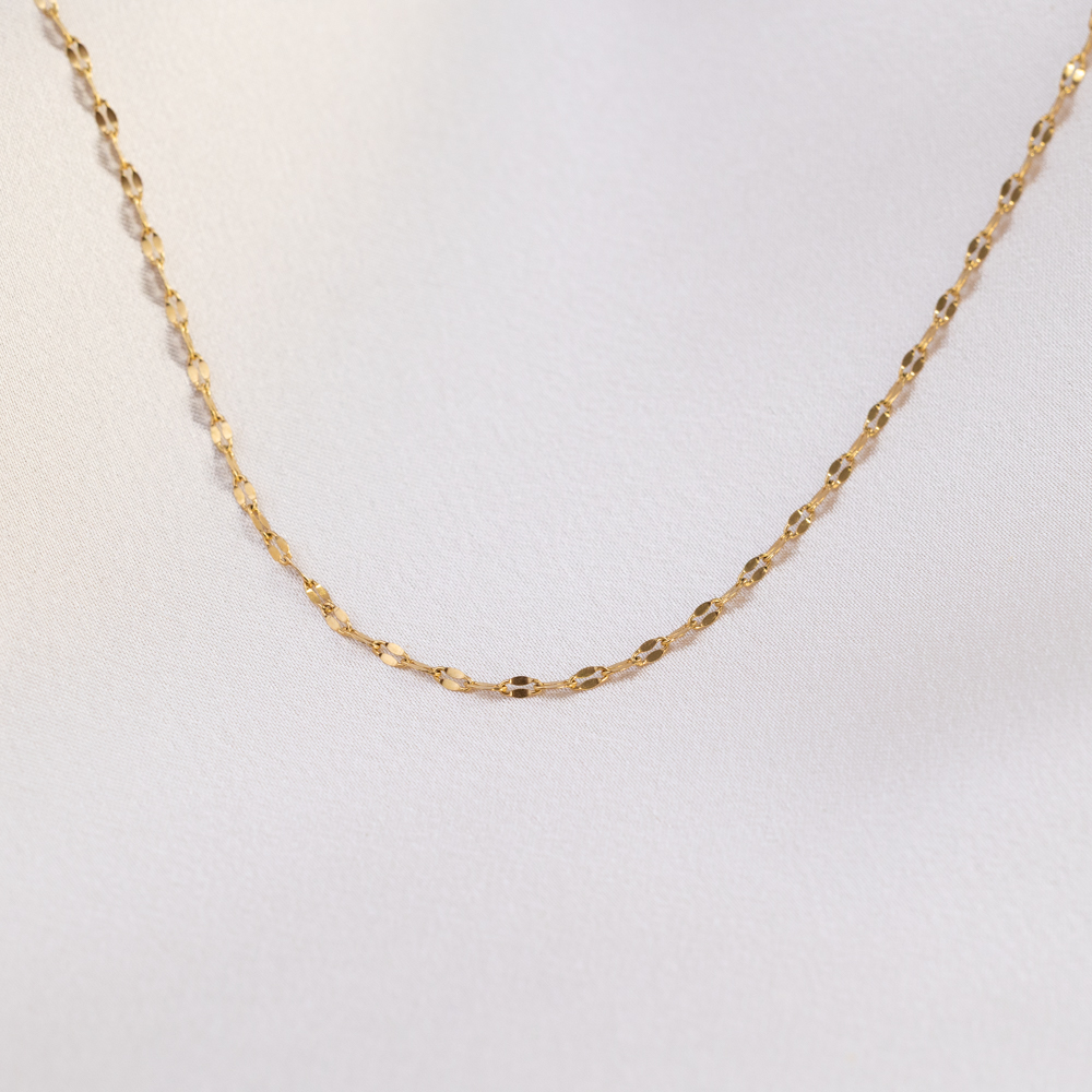 This dainty piece is the ultimate “skinny” staple, thin enough to feel like a second skin, yet bright enough to make a delicate statement. Its adjustable length makes it a versatile foundation for a layered stack, sitting perfectly as a high-shine choker or a shimmering mid-length piece. It is the perfect choice for adding a touch of effortless, ethereal sparkle to your everyday look.