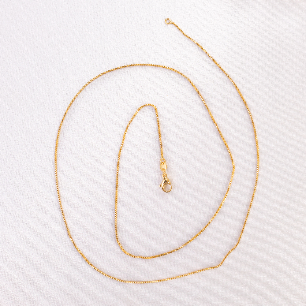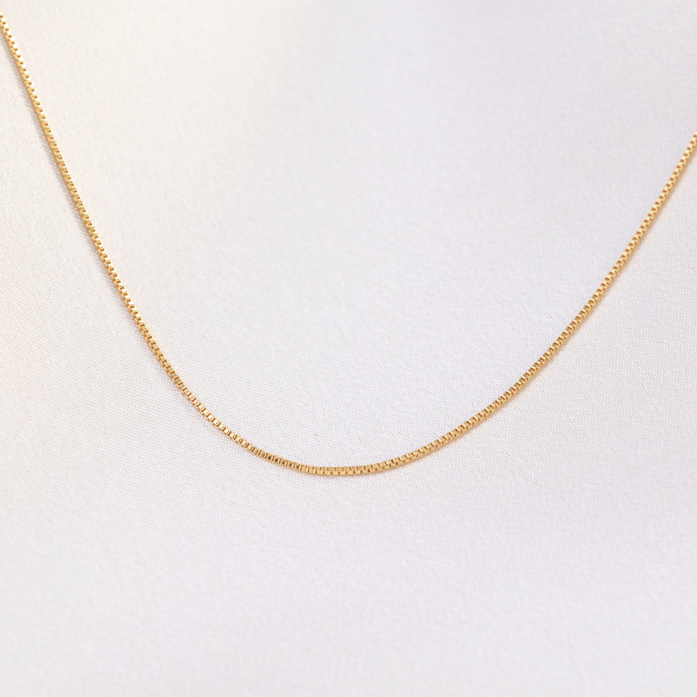 The definition of a refined classic. This 1.2mm box chain—also known as a Venetian chain—is the ultimate “go-to” for the modern jewelry lover. Featuring a series of micro-square links that are closely nested together, it creates a sleek, four-sided profile that offers a smooth, silk-like feel against the skin and a consistent, mirror-like shimmer.