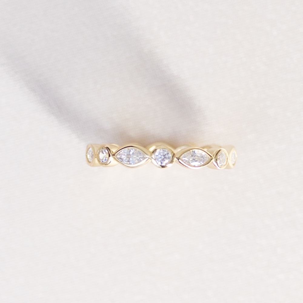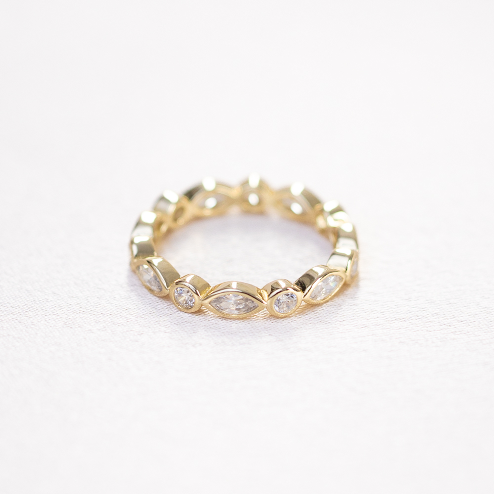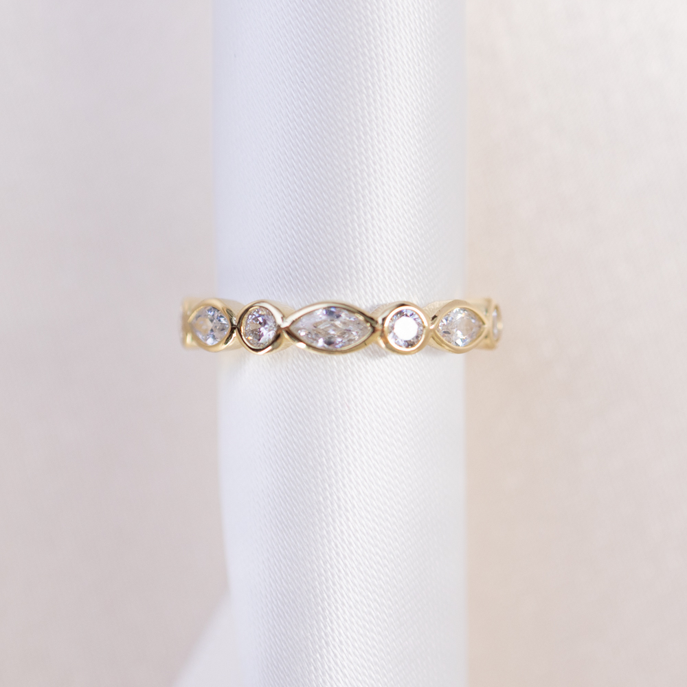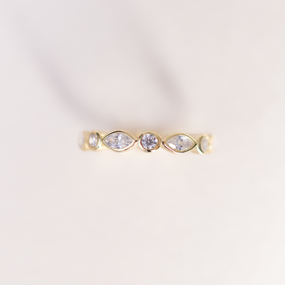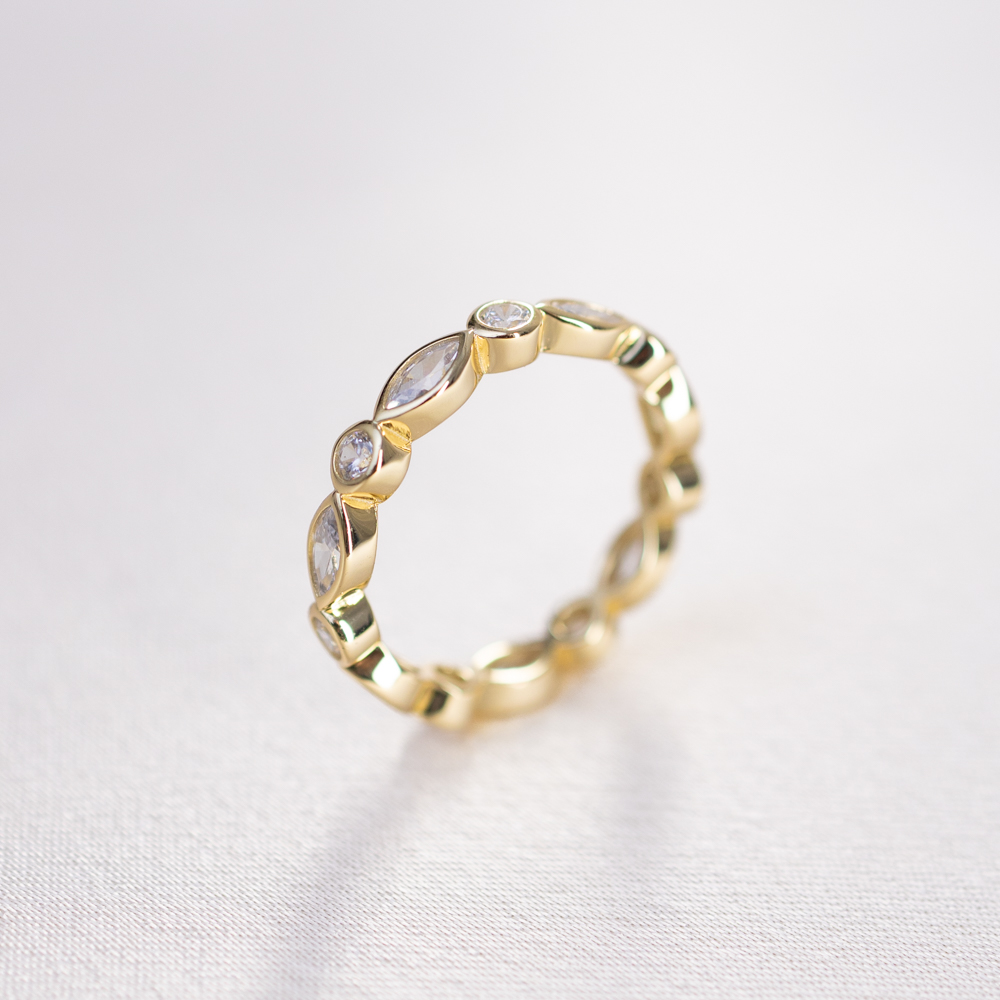 Each geometric shape is meticulously embedded with brilliant clear cubic zirconia, adding a layer of intricate sparkle to the architectural gold framework. The contrast between the soft curves of the metal and the precision-set stones results in a piece that feels both vintage-inspired and cutting-edge. Whether worn as a standalone focal point or as the anchor of a luxury ring stack, this band is designed to command attention with every gesture.