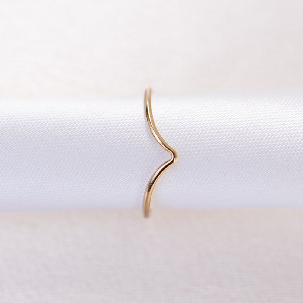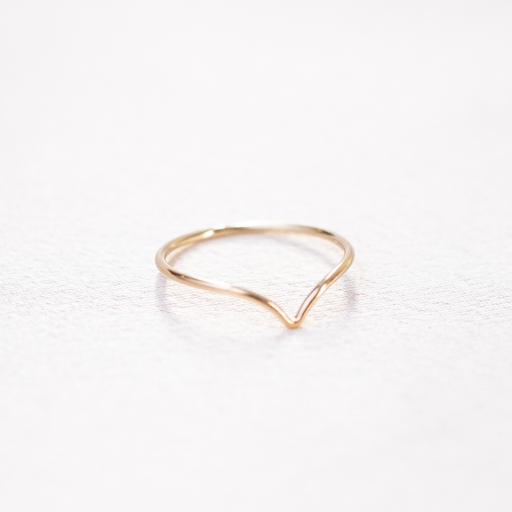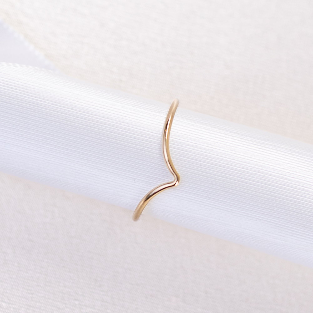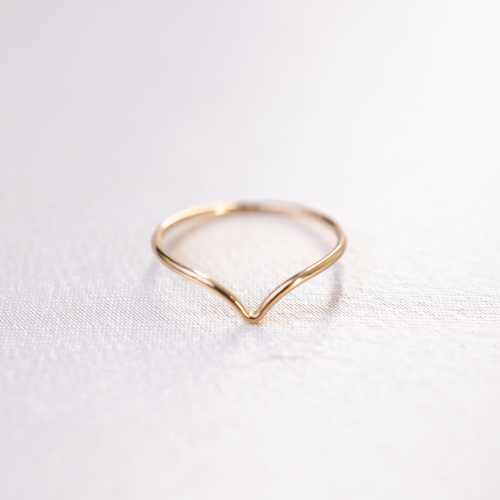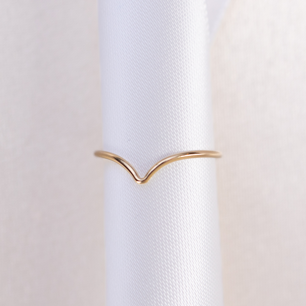The minimalist’s answer to modern geometry. This clean, polished 14k gold filled V-shape band from our Stacking Ring Collection offers a sleek, vintage-inspired silhouette without the extra embellishment. Its sharp, “wishbone” curve creates an elegant focal point that naturally elongates the finger, providing a sophisticated and structured look that feels both retro and contemporary.